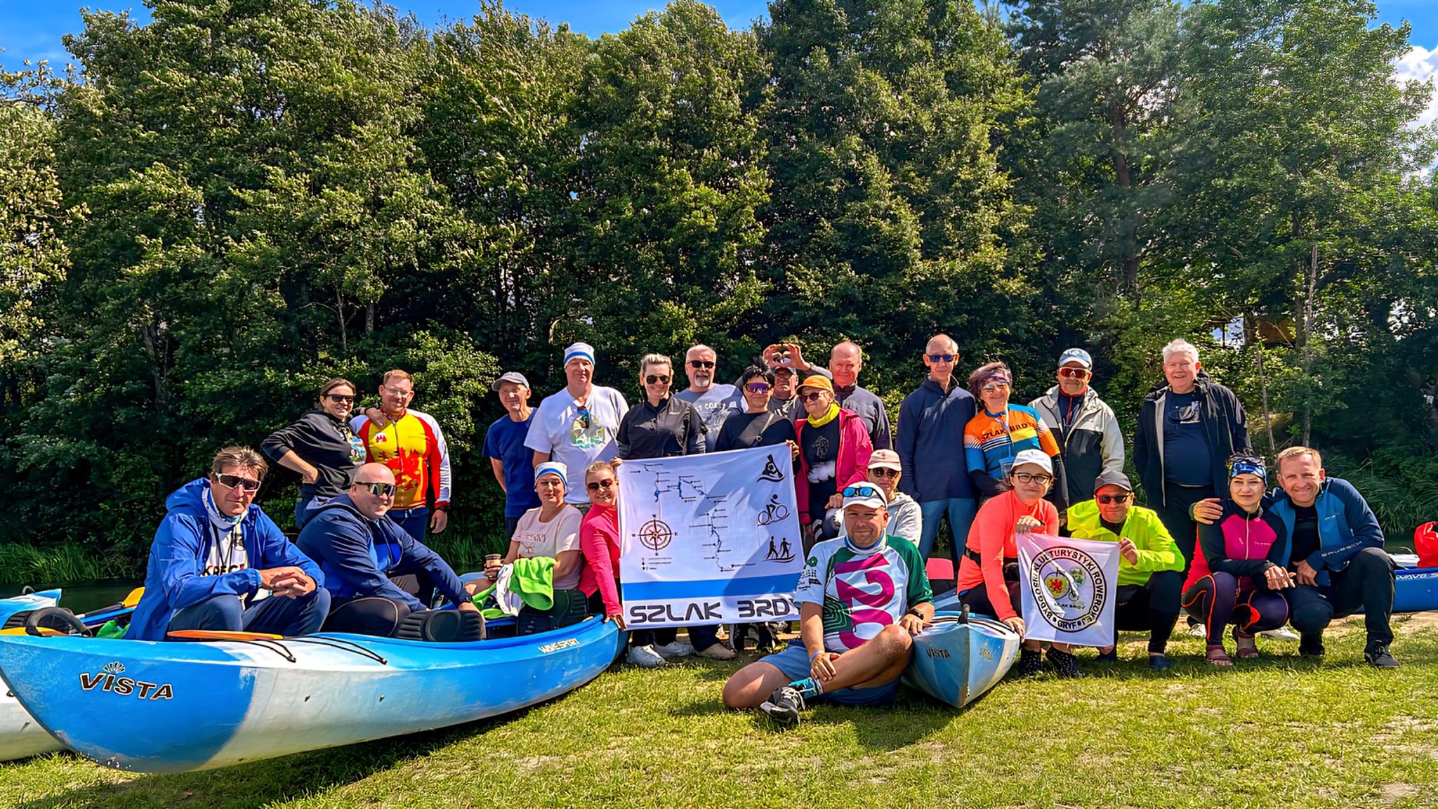 Druga edycja Szlaku Brdy to jedna z wielu inicjatyw wpisujących się w obchody 30-lecia BKTR GRYF. Rajd prowadził Dawid, którego wielką pasją jest propagowanie tego szlaku. Wspierał go cały czas Tomek czuwający na końcu grupy, dając sygnały za pomocą „walkie-talkie”. Ten niezwykle zgrany duet zapewnił nam warunki, w których mogliśmy w pełni oddać się urokom trasy.......... Wyprawa wyjątkowa, piekielnie trudna i wymagająca. Wiodła w większości przez leśne dukty, malinowe chruśniaki, uciążliwe piaszczyste lub błotniste ścieżyny i gęstwiny poprzecinane powalonymi drzewami. Soczysta majowa roślinność, przechodząc już w fazę bujnej dzikości, co jakiś czas była wzbogacona widokiem tej najpiękniejszej - Królowej Polskich Rzek, którą niezaprzeczalnie i niezmiennie jest ....... BRDA (tu się odzywa patriotyzm lokalny Dawida ).